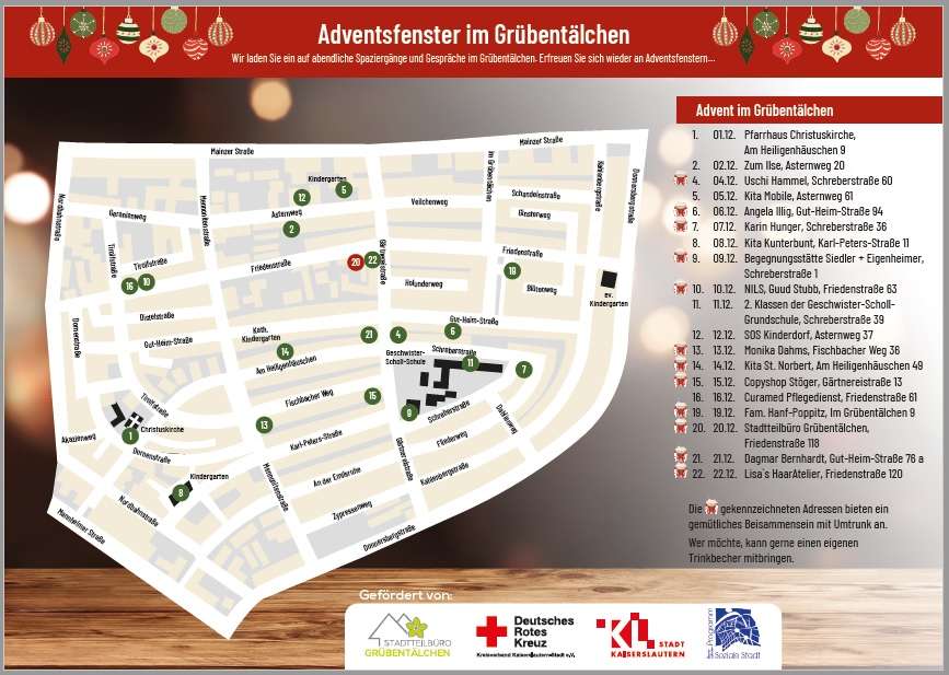 Informationen und Lageplan gibt es im Stadtteilbüro Grübentälchen, Friedenstr. 118, Tel 0631 680 316 90.