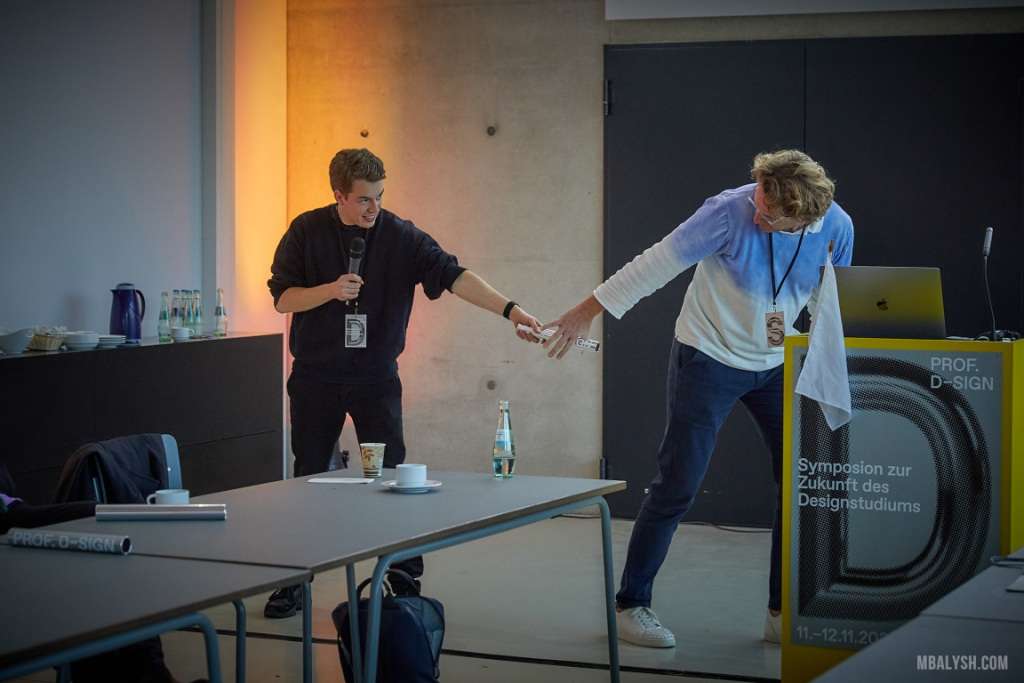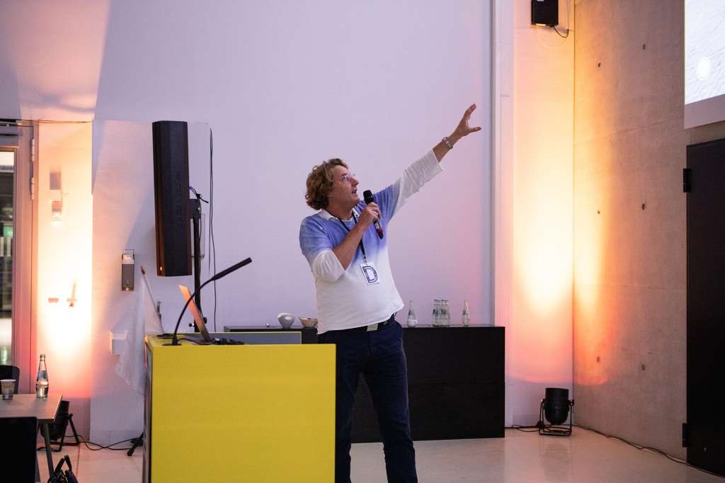 BU: Prof. Dipl.-Des. (FH) Christian Schmachtenberg während seines Vortrags beim Symposium „PROF.D- SIGN“ zur Zukunft des Designstudiums (Foto: Marina Balysh)