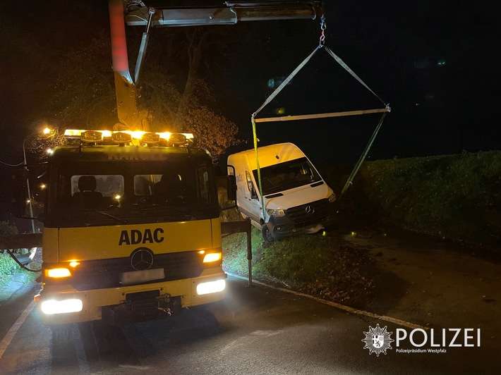 Vermutlich aus Unachtsamkeit hat sich der Fahrer eines Transporters in der Straße „Im Gersweilerhof“ am Donnerstagabend in eine missliche Lage gebracht. Er wollte in einer Auffahrt wenden. Dabei kam er leicht vom Weg ab und fuhr sich am Hang fest. Der Sprinter musste durch ein Abschleppunternehmen mit einem Kran geborgen werden. Dabei drohte er zu kippen. Um weitere Schäden zu verhindern, sperrte die Polizei die Straße für die Dauer der Bergung. Diese verlief ohne Komplikationen. Verletzt wurde niemand. Der Sachschaden steht noch nicht fest. |elz