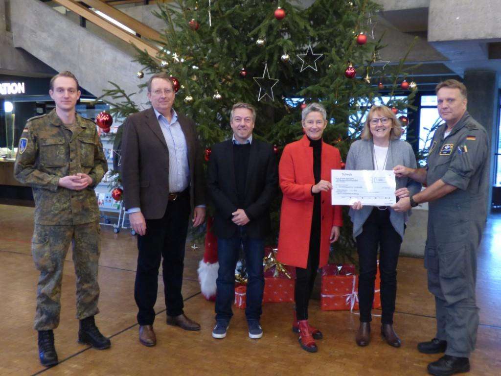 Als eine ganz besondere Tradition zu Weihnachten bezeichnete Bürgermeisterin Beate Kimmel die diesjährige Spendenübergabe der NATO-Musikfestival-Stiftung an den Sozialpädagogischen Beratungs- und Betreuungsdienst (SBBD) der Stadt Kaiserslautern. Durch den Scheck, der auf Grund der hohen Inflation erstmals auf 1.500 Euro aufgestockt wurde, dürfen sich 32 betreute Familien mit insgesamt 63 Kindern auf ein Päckchen zum Weihnachtsfest freuen. Dieses wird in den nächsten Tagen von den SBBD-Mitarbeiterinnen mit verschiedenen Grundnahrungsmitteln, Obst sowie der ein oder anderen süßen Überraschung gefüllt und anschließend an die Familien verteilt. „Bei unserer Spende wissen wir genau, dass diese eins zu eins den Kindern und Familien hier in Kaiserslautern zu Gute kommt“, betonten die beiden Stiftungsvorsitzenden, Bürgermeisterin Beate Kimmel und Oberst Michael Trautermann. „Wir hoffen, dass die liebevoll zusammengestellten Päckchen wieder viele Kinderaugen zum Leuchten bringen und wir so zu einem schönen Weihnachtsfest in den Familien beitragen können.“ Die NATO-Musikfestival-Stiftung finanziert mit ihrer Spende bereits im 14. Jahr die Weihnachtsaktion der Familienhilfe.