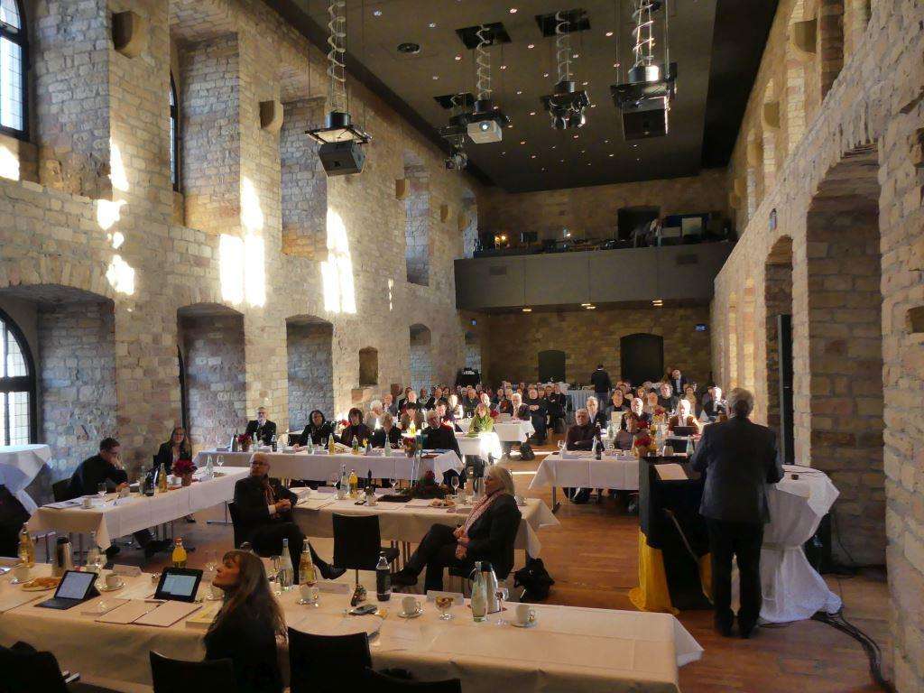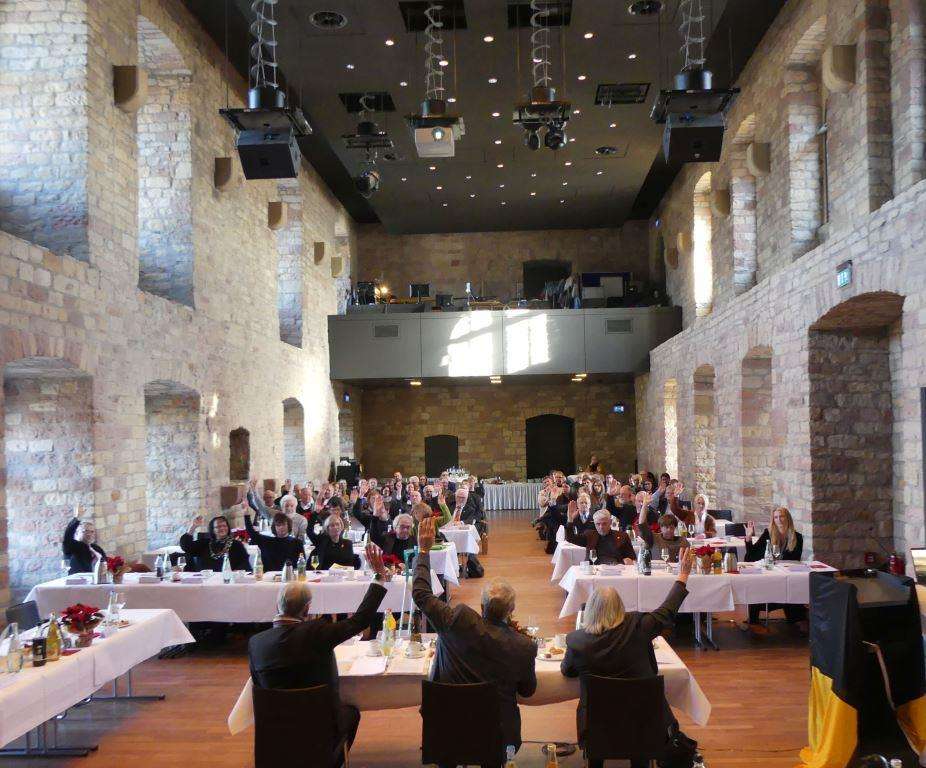 Festsaal des Hambacher Schlosses: Bezirkstagsvorsitzender Theo Wieder bringt den Haushalt ein