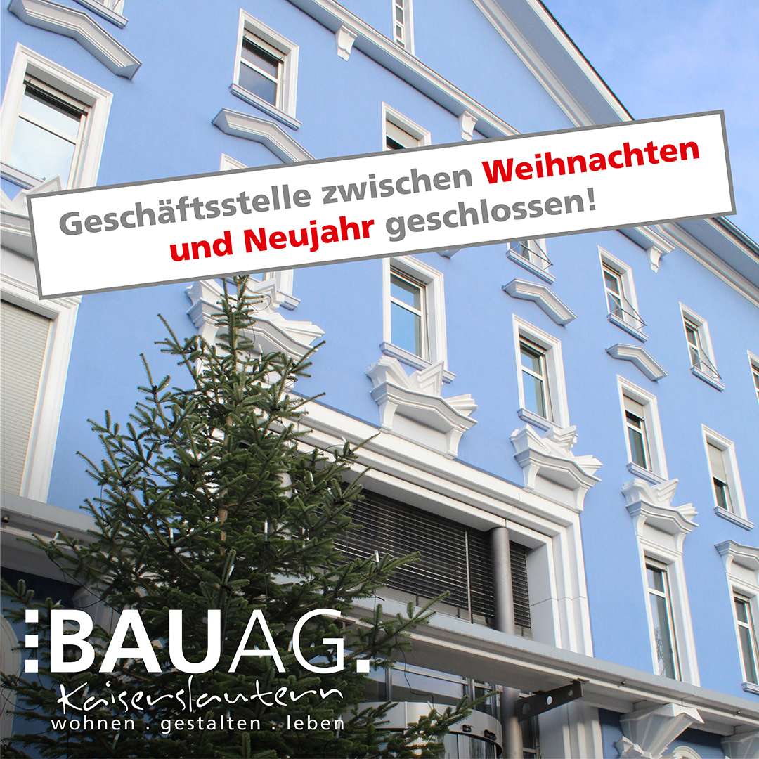 Die Geschäftsstelle der Bau AG in der Fischer- straße 25 ist von Dienstag, 27. Dezember 2022, bis einschließlich Freitag, 30. De- zember 2022 für den Kundenverkehr geschlossen. Für dringende Fälle ist die Zentra- le der Bau AG während der gewohnten Zeiten unter der Telefonnummer 36 40-0 telefonisch besetzt. Bei technischen Notfällen außerhalb der Geschäftszeiten sind die Mitarbeiter der K-tec GmbH unter der Telefonnummer 36 40-110 zu errei- chen. Ab Dienstag, 2. Januar 2023, ist die Geschäftsstelle wieder zu den gewohnten Zeiten geöffnet.