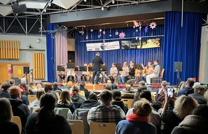 Nicht nur Eltern und Verwandte fanden am 6. Dezember ihren Weg in die Aula der Kurpfalz Realschule plus. Auch Freunde, Mitarbeiter und Gäste sorgten am musikalischen Weihnachtsabend für eine angenehme Stimmung und viel Anerkennung für die Leistungen der Schülerinnen und Schüler der Bläserklassen. Nach der Begrüßung durch die Schulleiterin Frau Dr. Dorothea Zink eröffnete den Weihnachtskonzertabend die Klasse 5b mit dem bekannten Weihnachtslied „Jingle Bells“. Unter der Leitung von Beate Lingstädt zeigten die Nachwuchsmusiker woran sie in den ersten Wochen und Monaten mit ihren Instrumenten gearbeitet hatten. Verschiedene Ensembles der Bläserklasse 6b nahmen das Publikum mit in die vorweihnachtliche Zeit. Das große Blasorchester der Schule, bestehend aus aktuellen und ehemaligen Schülerinnen und Schüler, rundete den Abend kraftvoll ab und entsendete alle Besucher mit einem warmen Gefühl in die dunkle Adventszeit.
