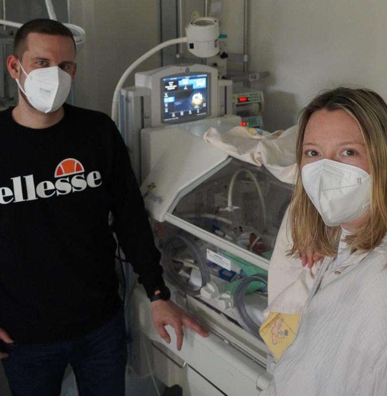 Foto: Nadine Anthes und Niko Feldner nutzen jede freie Minute, um Zeit mit ihrer Tochter Ella zu verbringen, die als Frühchen noch eine Weile in der Kinderklinik bleiben muss.