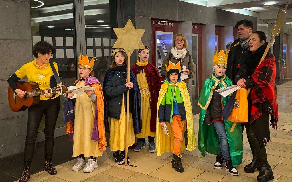 Die Sternsinger der Pfarrei Heiliger Martin zogen in den Kostümen von Caspar, Melchior und Balthasar durch die Kundenhalle und boten schöne Lieder und Gedichte dar, denen sowohl Mitarbeiter als auch Kunden erfreut ihr Gehör schenkten. Im Anschluss wurde das Haus mit dem traditionellen Segen bedacht.
