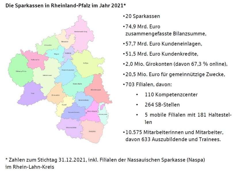 Der Sparkassenverband Rheinland-Pfalz ist einer von bundesweit insgesamt zwölf regionalen Verbänden der Sparkassen-Finanzgruppe; er ist für die 20 rheinland-pfälzischen Sparkassen (75 Mrd. Euro Bilanzsumme, 10.575 Beschäftigte, 703 Filialen per 31.12.2021) Interessenvertretung und Dienstleister.