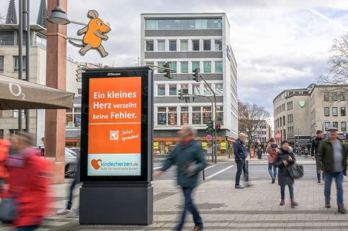 Der gemeinnützige Verein kinderherzen und die Wall GmbH starten gemeinsame Plakat- und Anzeigenkampagne in deutschen Großstädten. Zum dritten Mal in Folge wird auf großflächigen analogen und digitalen Flächen auf das Thema angeborene Herzfehler aufmerksam gemacht und zum Spenden aufgerufen. Rund 400.000 Kinder und Erwachsene in Deutschland leben mit einem angeborenen Herzfehler.