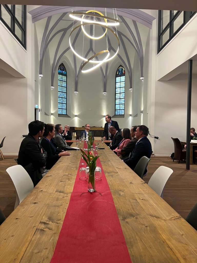 Nachdem die Gäste herzlich in der beeindruckenden Kapelle begrüßt wurden, gab es ein paar Grußworte der Verantwortlichen des Projekts der ISW in Landstuhl. Herr Dr. Clev, Geschäftsführer der ZukunftsRegion Westpfalz, welche das Vorhaben seit Anbeginn und bis heute unterstützt hat, Dr. Klaus Weichel in seiner Funktion als stellvertretender Vorsitzender der ZRW und Reto Ammann, Gesamtleiter der SBW Haus des Lernens AG waren sich besonders in einem Punkt einig: die ISW hat großes Potenzial, ein entscheidender, harter Standortfaktor für Familien und Fachkräfte aus dem Ausland, aber auch für international tätige Unternehmen zu werden.