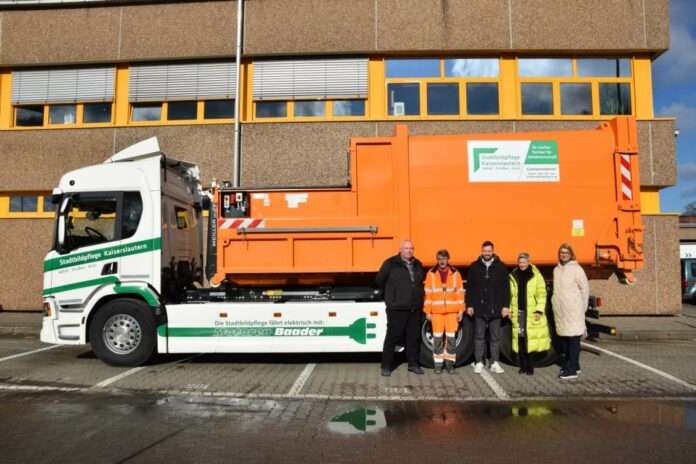 Ab nächster Woche wird die Stadtbildpflege Kaiserslautern (SK) im Containerdienst mit einem Elektro-Abrollkipper unterwegs sein. Das Fahrzeug, mit dem an verschiedenen Standorten in der Stadt Abfallcontainer abgeholt und angeliefert werden sollen, ist der erste Lkw mit elektrischem Antrieb im Fuhrpark der SK. „Mit ihrem ersten emissionsfreien Lkw leistet die Stadtbildpflege einen zukunftsweisenden Beitrag zum Klima- und Umweltschutz in Kaiserslautern“, freut sich Bürgermeisterin und Werkdezernentin Beate Kimmel. Ein erfreulicher Nebeneffekt des elektrischen Antriebes sei außerdem, dass sich das Fahrzeug leise fortbewegt und somit zu einer angenehmeren Wohnatmosphäre für die Bürgerinnen und Bürger beitragen kann.