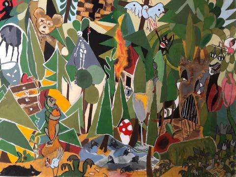 So wirken meine Bilder knallbunt, fröhlich, optimistisch und offenbaren meist beim zweiten Blick einen Schatten. Je nachdem was der Betrachter sich beim Anblick gerade selbst erzählt und auf welche Reise er oder sie gehen mag, die jeder bekanntlich auf seine Weise tut.