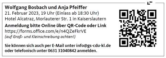 Alle Interessierten Bürger sind herzlich eingeladen einmal mehr den Dialog mit Anja Pfeiffer zu führen und an der Diskussion mit Wolfgang Bosbach teilzunehmen!