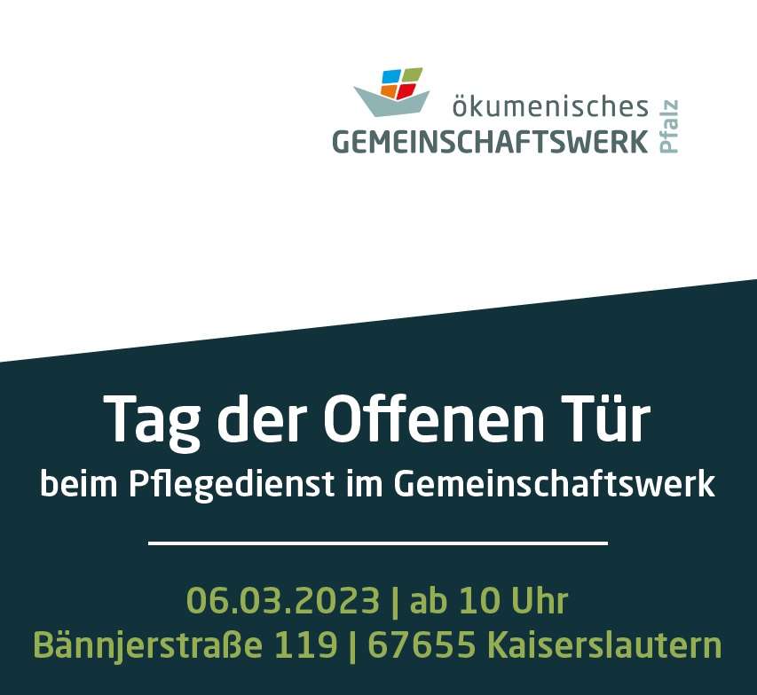Der Pflegedienst im Ökumenischen Gemeinschaftswerks Pfalz hat ein neues Domizil. Ab dem 6. März ist das Team um Pflegedienstleiter Johannes Laible in der Bännjerstraße 119 in Kaiserslautern zu finden. Der Standort im Neubau von „Nils-Wohnen im Quartier“ im Goetheviertel bleibt bestehen. Am Montag, 6. März, lädt das Team ein zum Tag der Offenen Tür. Ab 10 Uhr freuen sich die Experten zum Thema Pflege, Betreuung und Entlastung auf alle Interessierten.