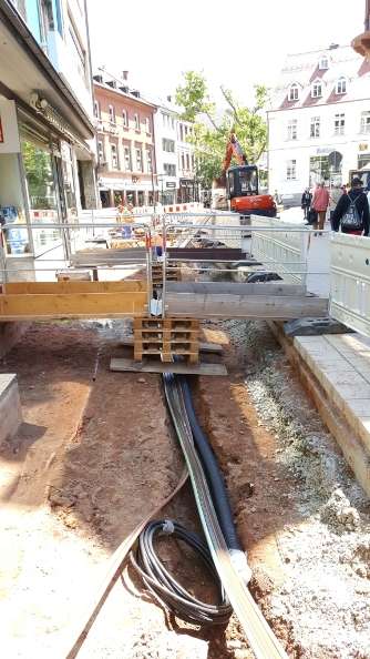 Bild: Fußgängerführungen waren schon bei der Sanierung am Schillerplatz im Einsatz. Die Geschäfte bleiben damit jederzeit erreichbar.