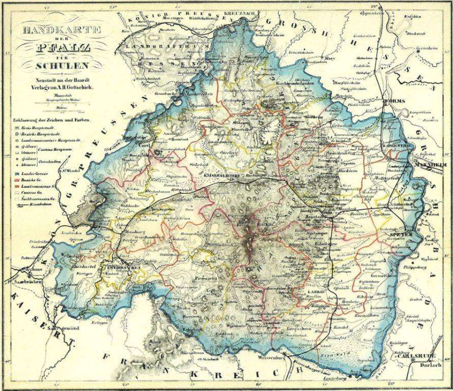 (Pfalz-Karte um 1850, Foto: Sammlung IPGV)