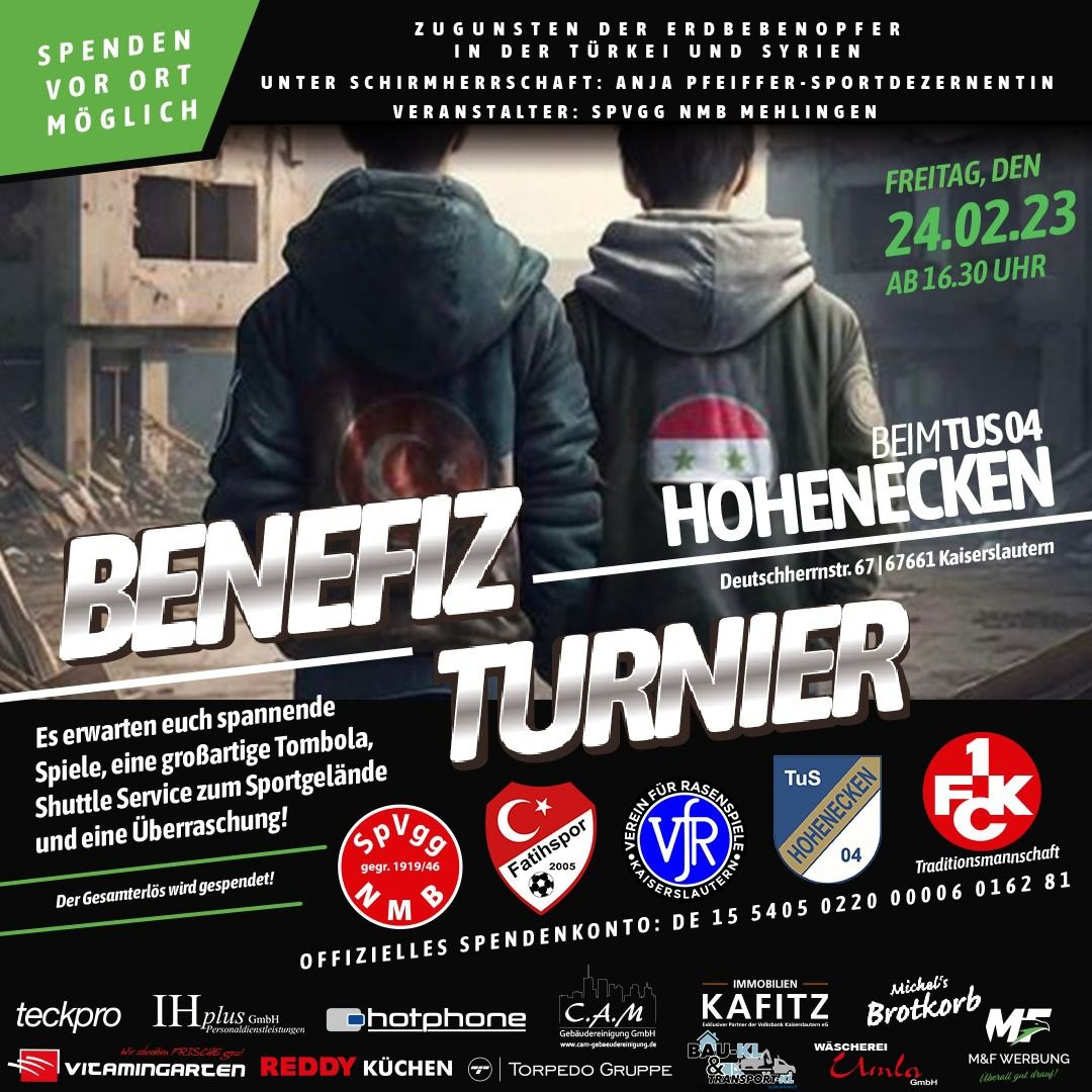 Über 1500 Menschen haben sich am vergangenen Freitagnachmittag und Abend auf dem Sportgelände des TuS04 Hohenecken eingetroffen und das spontan organisierte Fußballturnier sowie das anschließende Spiel der Traditionsmannschaft des 1. FC Kaiserslautern gegen ein Kaiserslauterer Allstarteam besucht. Hauptziel der Veranstaltung war es, Spenden für die Erdbebenhilfe in der Türkei und Syrien zu sammeln. Ugur Omurca, besser bekannt als Uggi, hatte mit Freunden bis Mitternacht am Freitag und gleich wieder am samstagfrüh aufgeräumt und am Sonntag gemeinsam mit Michael Littig einen ersten Einblick in die Spendenbehälter genommen. Beide waren sichtlich überrascht und begeistert: ein vierstelliger Betrag sollte erreicht werden, 10.000 Euro bezeichneten die Organisatoren im Vorfeld als Schallmauer und nun scheint ein Betrag in Höhe von über 20.000 Euro erlöst worden zu sein!