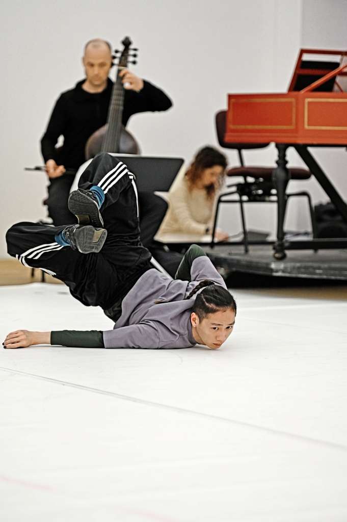 Der Tanzabend „Fuga“ sucht den Kontakt zwischen den Künsten und zudem den spannungsvollen Austausch zwischen Alt und Neu. Im Dialog mit der Mezzosopranistin Polina Artsis aus dem Opernensemble des Pfalztheaters, dem Solo-Cellisten der Pfalzphilharmonie, Matthias Bergmann, und dem Cembalisten Younggeun Yoon entwickeln die Tänzer:innen des Tanzensembles ausgehend von konkreten dramaturgischen Vorgaben zu barocker Kammermusik zeitgenössische Tanzimprovisationen.