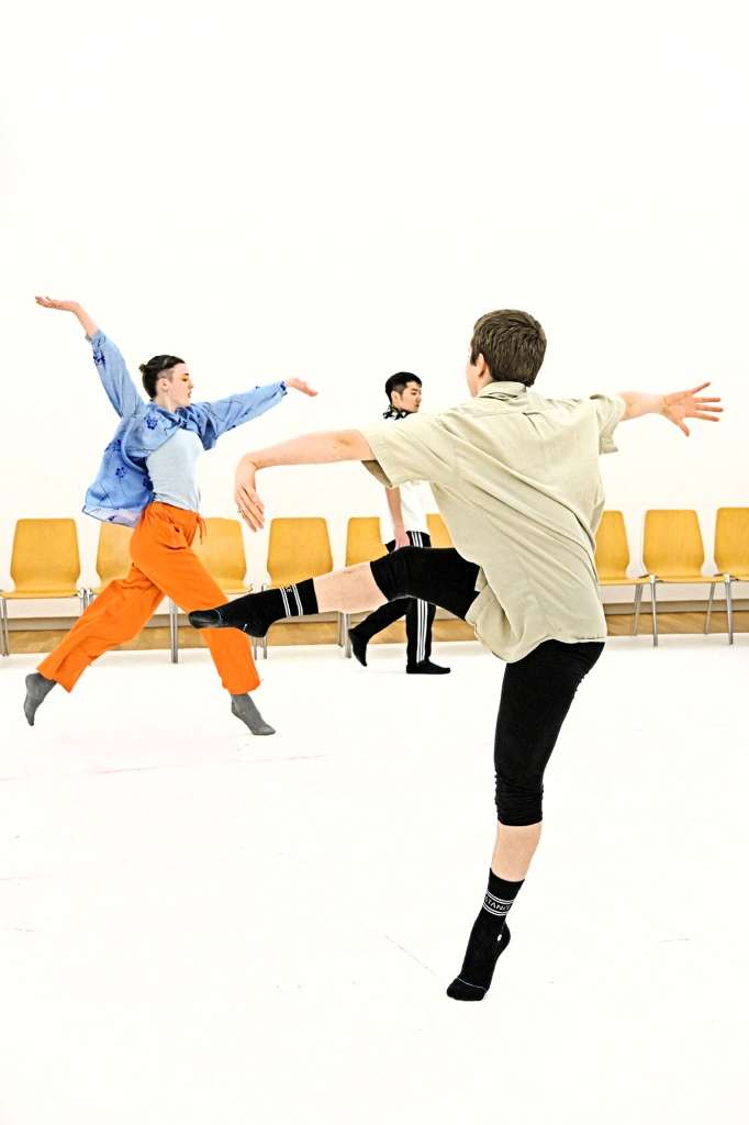 Der Tanzabend „Fuga“ sucht den Kontakt zwischen den Künsten und zudem den spannungsvollen Austausch zwischen Alt und Neu. Im Dialog mit der Mezzosopranistin Polina Artsis aus dem Opernensemble des Pfalztheaters, dem Solo-Cellisten der Pfalzphilharmonie, Matthias Bergmann, und dem Cembalisten Younggeun Yoon entwickeln die Tänzer:innen des Tanzensembles ausgehend von konkreten dramaturgischen Vorgaben zu barocker Kammermusik zeitgenössische Tanzimprovisationen.