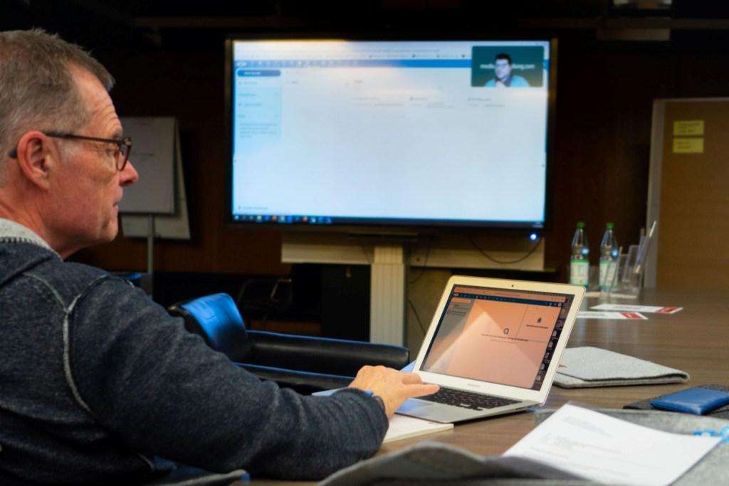 Foto (c) Stadt Kaiserslautern: Der Vorsitzende des Bowling Vereins Kaiserslautern, Hans-Jürgen Schmidt, probierte im letzten Webseminar das Programm Nextcloud aus.