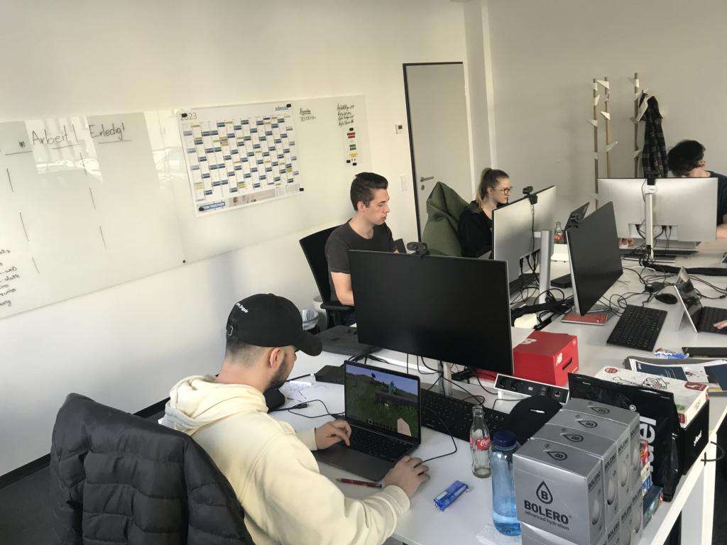 Eine Woche später fand dann in Saarbrücken in den Räumlichkeiten der adesso SE ein ganztägiger Workshop statt, bei dem mehrere Arbeitsphasen mit allen typischen methodischen Bestandteilen durchgeführt wurden. Hierzu teilten sich die 21 teilnehmenden Studierenden in vier Entwicklungsteams auf und besetzten innerhalb der Teams die Rollen des Productowners und des Scrum-Masters. Ein Auftraggeber erteilte den Entwicklungsteams von Sprint zu Sprint weitere Entwicklungsaufgaben. Der besondere Clou dabei war, dass die Teams ihre Aufgabe in der Computerspielumgebung Minecraft bearbeiteten. Manche Studierenden kannten die Software bereits, andere mussten sich erst einarbeiten – auch in realen Entwicklungsprojekten besitzen die Projektmitglieder unterschiedliche Kompetenzen und müssen gemeinsam lernen.
