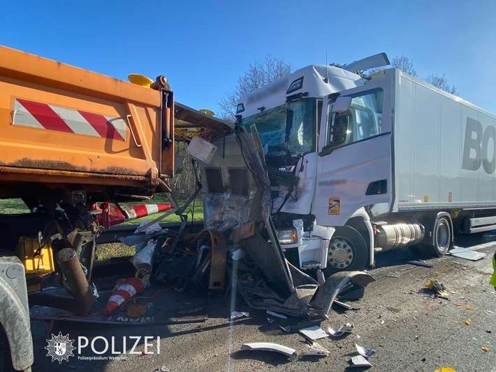 Ein Lkw ist am Freitagmorgen in eine Absperrung der Autobahnmeisterei gekracht. Der Fahrer kollidierte mit seinem Sattelzug gegen viertel nach 9 in Höhe Kaiserslautern-Einsiedlerhof mit der Schildertafel der Autobahnmeisterei. Die Unfallursache steht aktuell nicht fest. Der Fahrer wurde leicht verletzt und durch den Rettungsdienst in ein Krankenhaus gebracht. Der Lkw, sowie der Anhänger mit der Schildertafel mussten abgeschleppt werden. Die Höhe des Sachschadens steht noch nicht fest. Zur Zeit laufen die Aufräumarbeiten an der Unfallstelle. Die Polizei rechnet mit Verkehrsbehinderungen bis in den Nachmittag. |elz