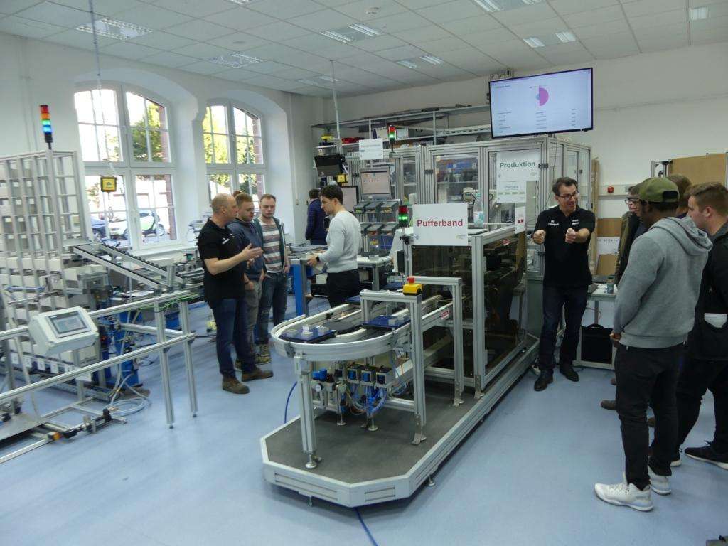 Digital gesteuerte Industrieanlage: Blick in eine Automatisierungswerkstätte der MHK