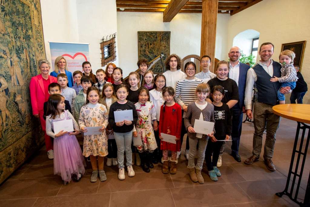 Zur Ehrung der in Kaiserslautern wohnenden Preisträger und Preisträgerinnen des 60. Regionalwettbewerbs „Jugend musiziert“ hat die städtische Emmerich-Smola-Musikschule in den Casimirsaal eingeladen. Seit vielen Jahren unterstützt die Sparkasse Kaiserslautern den Wettbewerb junger musikalischer Talente. Die Sparkasse sei in und mit der Region verwurzelt und Kultur verstehe man quasi als Boden, auf dem Musik gut gedeihen könne, bekräftigte Hartmut Rohden, stellvertretender Vorstandsvorsitzender der Sparkasse Kaiserslautern. Gemeinsam mit Andrea Brunnett, Marketingleiterin der Sparkasse Kaiserslautern, gratulierte er den jungen Talenten und überreichte ihnen Preisgelder im Gesamtwert von rund 1.600 Euro.