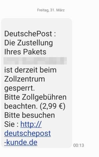 Der Zoll warnt vor falschen Mitteilungen auf das Smartphone, in denen behauptet wird, eine Sendung läge beim Zoll und es wären Gebühren fällig. In der Nachricht ist zudem ein Link enthalten. Bei dieser Art von Mitteilungen handelt es sich weder um Nachrichten des Zolls noch des jeweilen Transportunternehmens, sondern um eine Betrugsmasche. Der Empfänger soll nach Weiterleitung über den Link Überweisungen vornehmen bzw. seine Bankdaten preisgeben. Vereinzelt hatten sich Bürger an den Zoll gewandt, weil sie den -zumeist kleinen- Betrag einzahlen wollten, um eine vermeintliche Sendung zu erhalten. Andere hatten schon direkt an die Bundeskasse überwiesen bzw. wollten das Geld persönlich bar bei der Zahlstelle des Hauptzollamts einzahlen. Der Zoll rät, bei Erhalt einer solchen Nachricht diese einfach zu löschen. Der Zoll tritt niemals auf diese Art an Paketempfänger heran, schickt Links oder fordert sie zu Zahlungen auf. Überdies gibt es in der Kommunikation mit Behörden eine ausreichende Frist um sich ggf. über die Echtheit von Schreiben und Mitteilungen zu informieren.