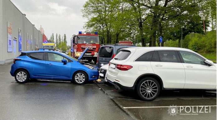 Zu einem ungewöhnlichen Unfall ist es am Donnerstagnachmittag in der Hohenecker Straße gekommen. Hier kam es auf einem Parkplatz zu einer Kettenreaktion. Insgesamt vier Autos wurden darin verwickelt und ein Mann leicht verletzt.