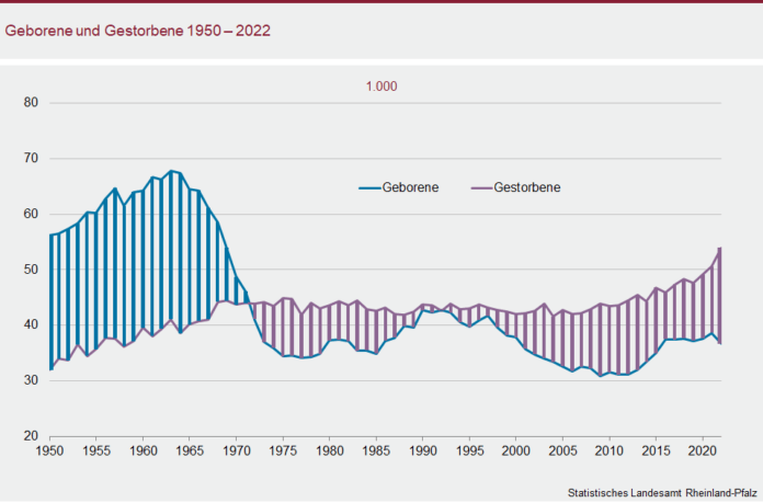 Im Jahr 2022 wurden rund 36.700 rheinland-pfälzische Kinder geboren, mehr als 53.900 Rheinland-Pfälzerinnen und Rheinland-Pfälzer starben.
