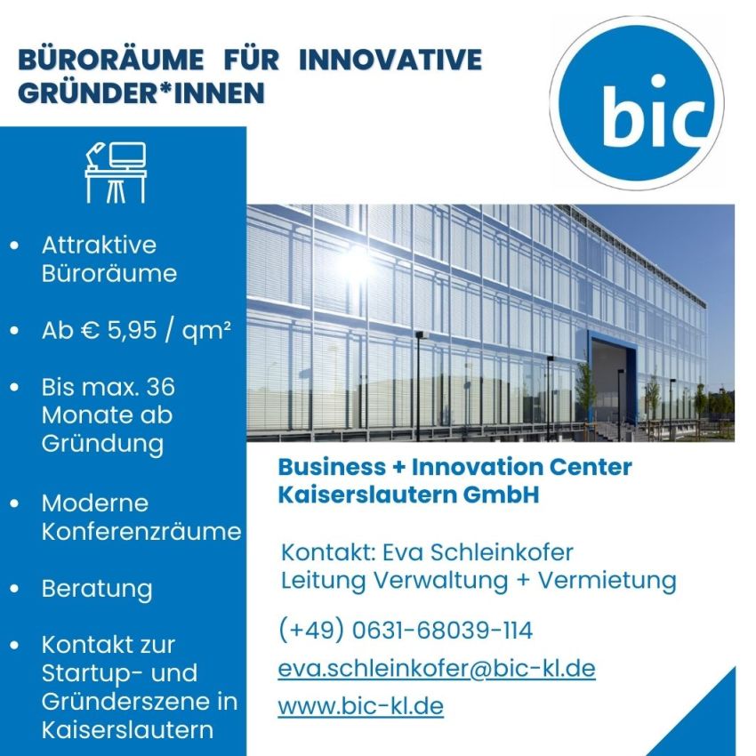 Kontakt: Eva Schleinkofer, eva.schleinkofer@bic-kl.de, 0631-68039-114,