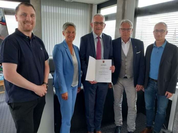 Oberbürgermeister Klaus Weichel hat am Mittwoch dem Leiter des Referats Recht und Ordnung, Rainer Wirth, zum 40-jährigen Dienstjubiläum gratuliert und eine Dankesurkunde des Landes Rheinland-Pfalz sowie der Stadt überreicht. Im Rahmen einer kleinen Feier bedankte sich Weichel für die langjährige enge und vertrauensvolle Zusammenarbeit.