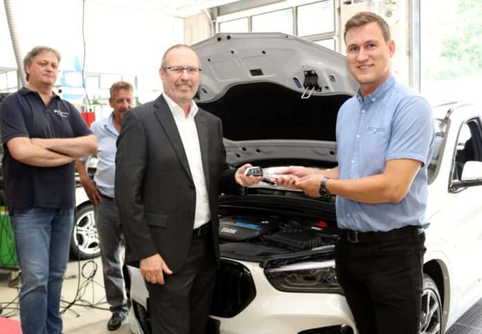Am Dienstag, den 20. Juni, hat die Handwerkskammer der Pfalz von der BMW AG über das Autohaus Euler in Kaiserslautern einen BMW X1 xDrive25e als neues Schulungsfahrzeug für die Kfz-Ausbildung erhalten. Bernd Kiefer, Manager Kundensupport der BMW AG, sowie Denny Schick, Aftersales-Manager, und Thomas Hess, Serviceleiter des Autohauses Euler, übergaben das Fahrzeug dem Ausbilderteam der Handwerkskammer in der Kfz-Werkstatt des Berufsbildungs- und Technologiezentrums (BTZ) in Kaiserslautern.