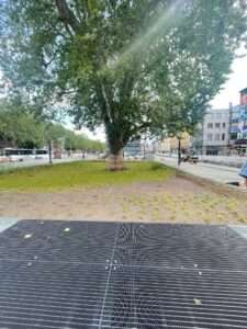Wurzelbrücke zum Schutz der Stadtplatane sowie neue Lichtmasten installiert