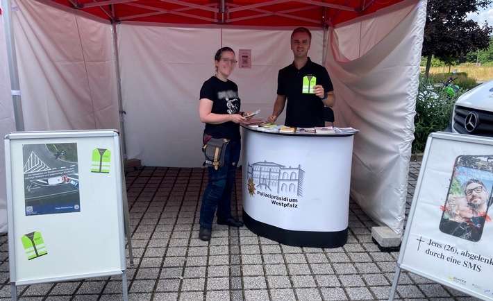 Verkehrsexperten des Beratungszentrums des Polizeipräsidiums Westpfalz informierten am Freitag, während der „Biker-Tage“ auf dem Parkplatz eines Möbelmarktes im PRE-Park rund um das Thema Motorradsicherheit. Am Infostand der Polizei kamen zahlreiche Motorradfreunde mit den Beratern ins Gespräch. Die Polizisten gaben wertvolle Tipps rund um „Technik, Mensch, Schutzausstattung und Fahrfertigkeiten“. Wichtig war den Einsatzkräften für die Botschaft „Sicher ankommen“ zu werben, um Verkehrsunfälle möglichst ganz zu vermeiden. |erf