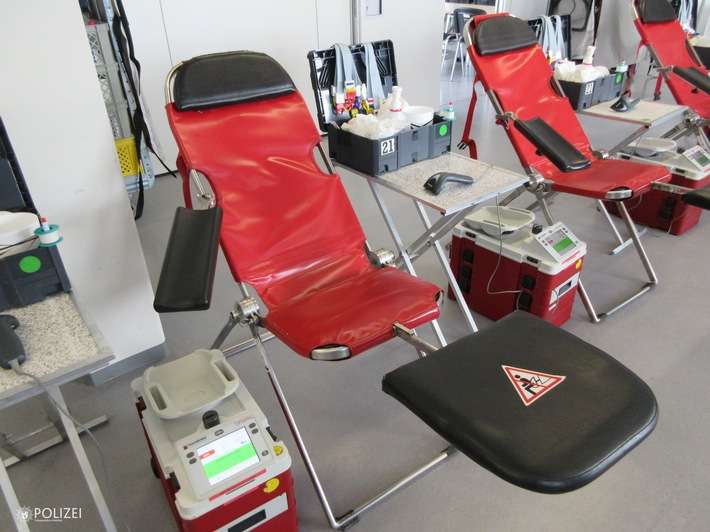 Das Polizeipräsidium Westpfalz, die Bundespolizeiinspektion Kaiserslautern und das Justizzentrum Kaiserslautern haben erstmals ihre Bediensteten zu einer gemeinsamen Blutspende-Aktion aufgerufen. Kooperationspartner war der DRK-Blutspendedienst West. Insgesamt traten 84 Mitarbeiterinnen und Mitarbeiter in den Besprechungsräumen des Polizeipräsidiums Westpfalz am Montag zur freiwilligen Blutspende an, unter ihnen 52 Erstspender. Bis zum Nachmittag wurden 72 volle Beutel, insgesamt 36 Liter Blut gespendet. Ein toller Erfolg. |erf