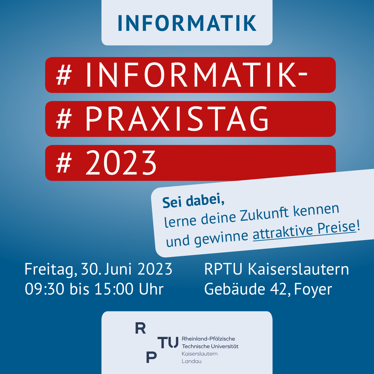 Am 30.06. findet von 9:30 – 15:00 Uhr der Informatik-Praxistag im Foyer von Gebäude 42 an der RPTU statt.