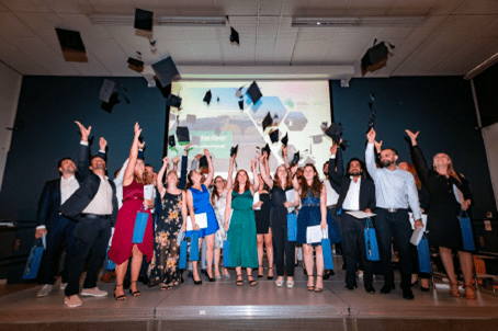 Nach dem offiziellen Veranstaltungsteil folgten Sektempfang, Getränke und Snacks bei angeregten Gesprächen im Innenhof des Campus Zweibrücken. Bei wunderschönem Wetter konnten die Absolvent*innen erstmalig die Gelegenheit nutzen, akademische Erinnerungsfotos in Talaren und Doktorhüten von Fotograf Sascha Mensching anfertigen zu lassen. Bei der anschließenden Afterparty „ELECTRO NIGHT“, organisiert von AStA und Fachschaft, klang der Abend in ausgelassener Stimmung gemeinsam mit den noch studierenden Kommilitoninnen und Kommilitonen im CAMPINO aus.