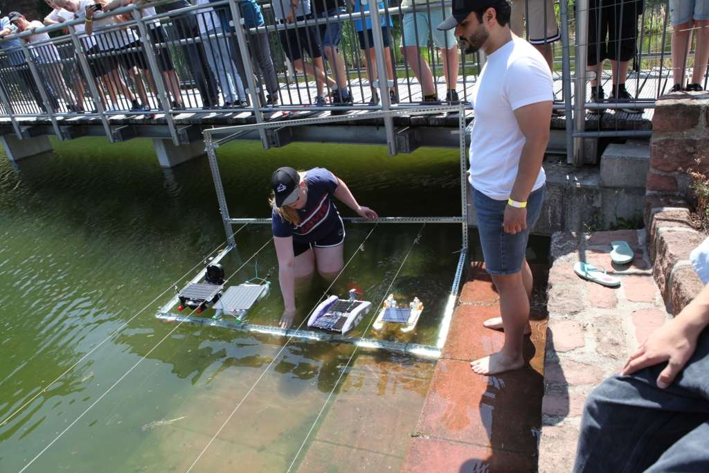 Immer vier Teams traten in zwei Durchläufen auf den vier ausgewiesenen Bahnen gegeneinander an. Jeweils zwei Teams kamen dabei weiter und konnten an den K.O.-Runden teilnehmen. Alle Teams hatten sehr viel Energie und Kreativität in die Konstruktion und die Pläne für die beste Energieausbeute und den besten Antrieb gesteckt. Als beste Lösung erwies sich ein Antrieb mit kleinen Propellern, die als Schiffsschraube eingesetzt wurden. Aber auch Propeller und Ventilatoren, die über Wasser antrieben sowie Schaufelräder in unterschiedlicher Ausführung kamen zum Einsatz.