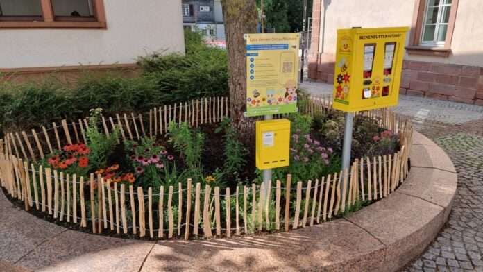 Der vor kurzem Vandalen zum Opfer gefallene Bienenautomat der Volkshochschule Kaiserslautern, wir haben berichtet, ist wieder einsatzbereit. Spontan hat die Baufirma Stephan Mayer Nachbarschaftshilfe geleistet. Das Bauunternehmen baut zur Zeit in unmittelbarer Nachbarschaft den neuen St. Martin Kindergarten. Stephan Mayer, der Besitzer des Bauunternehmens, hat seine Bauarbeiter beauftragt, den Automaten aufzurichten, weil er die Projektidee toll findet. Am umgearbeiteten ehemaligen Kaugummiautomaten könnten Kapseln mit regionalen Wildblumensamen mit Pflanzanleitung für 50 Cent gezogen werden, um in Gärten und Blumenkästen blühendes Bienen- und Insektenfutter anpflanzen zu können. Rund 40 verschiedene Blumensamen aus biologischem Anbau befinden sich in Kapseln, die anschließend in einem daneben installierten Briefkasten, zur Wiederbefüllung zurückgegeben werden können. Das nachhaltige Projekt ist in Kooperation mit der bundesweiten Initiative www.bienenretter.de . Zusätzlich hat die Volkshochschule auch bereits ein Ersatzteil für den teilweise zerstörten Ausgabeschacht bestellt.