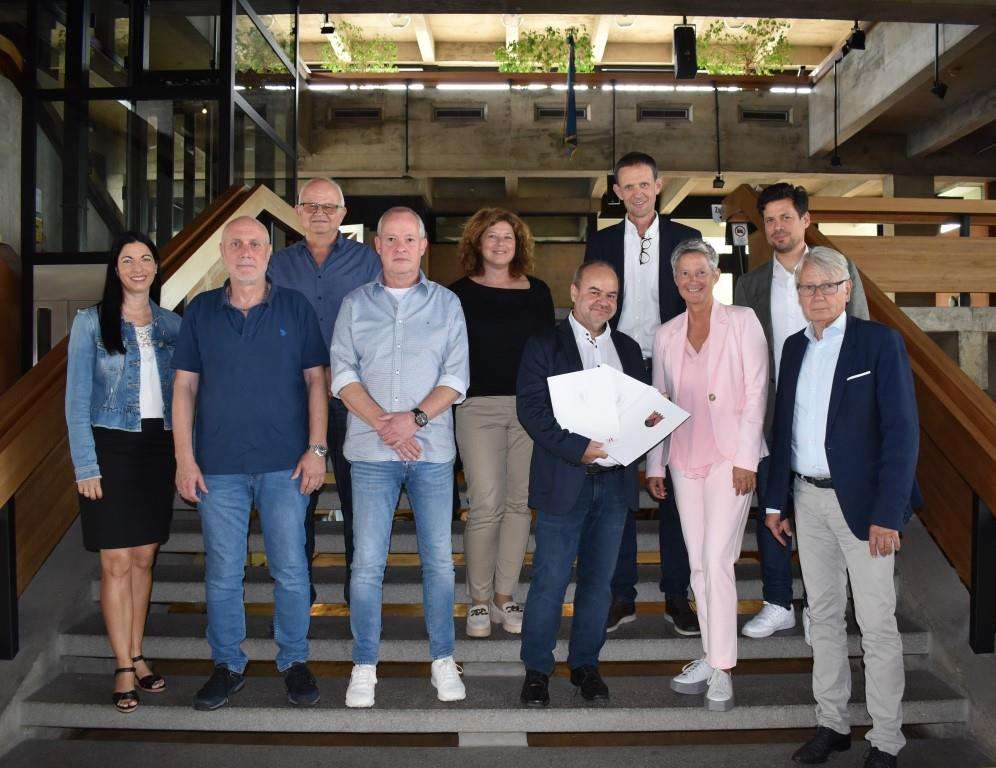 Dass ein 50-jähriges Dienstjubiläum gefeiert werden kann, ist an sich schon sehr selten. „Dass es gemeinsam mit der Verabschiedung gefeiert wird, hatten wir vermutlich noch nie“, wunderte sich auch Oberbürgermeister Klaus Weichel, der für die kleine Feier im Dienstzimmer von Bürgermeisterin Beate Kimmel eigens seinen Urlaub unterbrach. „Es ist mir Ehre und Freude zugleich, hier zu sein“, so der Rathauschef, in dessen Dezernat sowohl die Stadtentwicklung als auch das Personalreferat fallen. Weichel bedankte sich von Herzen bei seinem Namensvetter für fünf Jahrzehnte Engagement für die Stadt und wünschte alles Gute für den Ruhestand. Das Gleiche taten Bürgermeisterin Beate Kimmel, die einst in derselben Abteilung wie Hudomiet tätig war, sowie Peter Schmitt und Michael Klein vom Personalrat. Das Referat Stadtentwicklung war durch den stellvertretenden Leiter Christian Ruhland vertreten, das Personalreferat ebenfalls durch die stellvertretende Leiterin Karin Woll.