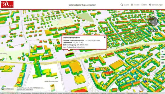 „Das ist ein weiterer Baustein der Kommunalen Klimaplanung, der sicherlich vielen Hausbesitzern zu Gute kommen wird“, freut sich Oberbürgermeister Klaus Weichel, der vor zwei Jahren den Anstoß für die Anschaffung der notwendigen Software gegeben hatte. Wie das Stadtoberhaupt erklärt, sei die Stadt mit diesem Angebot in der bundesweiten Spitze: „Kaiserslautern ist die erste Kommune bundesweit, die ein 3D-Solarkataster mit Potenzialrechner anbietet.“ Auch das Solarkataster des Landes sei lediglich in 2D gehalten.