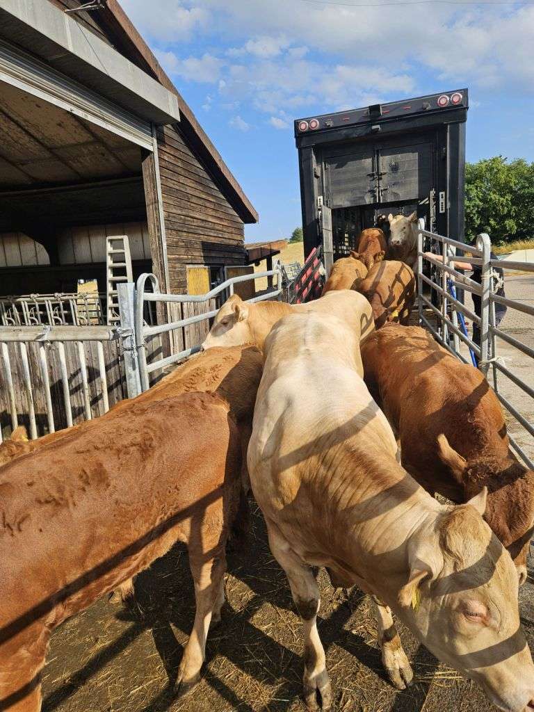 Werden im Hofgut Neumühle in ihre neuen Stallungen gebracht: 96 Bullen der Rassen Angus, Blonde d’Aquitaine, Charolais, Fleckvieh-Simmental und Limousin