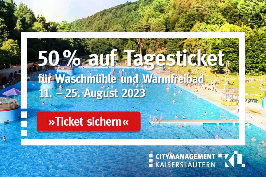 Wer bei dem schönen Wetter mal wieder Lust auf einen Freibadbesuch bekommen hat, kann Tagestickets für Warmfreibad oder Waschmühle vorübergehend zum halben Preis erwerben. Das Citymanagement schaltet pünktlich zum Wochenende am heutigen Freitag in der Stadt-KL-App eine Rabattaktion frei, die bis 25. August 2023 gehen wird.