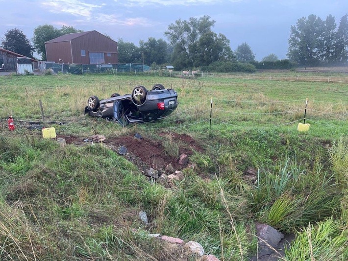 Ein 19-Jähriger ist am Samstagmorgen bei einem Verkehrsunfall zwischen Katzweiler und Hirschhorn schwer verletzt worden. Der Mann kam mit seinem Pkw auf der Bundesstraße 270 in einer Kurve von der Fahrbahn ab. Er überfuhr einen Fußgängerweg sowie eine Grünfläche und flog über den Bachlauf des Mehlbachs. Dort durchbrach sein Skoda einen Weidezaun, überschlug sich und kam auf dem Dach zum Liegen. Der Fahrer wurde schwer aber nicht lebensgefährlich, seine 18-jährige Beifahrerin leicht verletzt. Beide konnten sich selbst aus dem Autowrack befreien und wurden von Rettungskräften in ein Krankenhaus gebracht. Zeugen, die den Unfall beobachtet haben, werden gebeten, sich unter der Telefonnummer 0631/369-2150 mit der Polizei Kaiserslautern in Verbindung zu setzen.|PvD