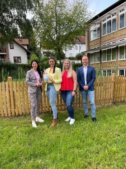 Schuldezernentin Anja Pfeiffer war am Mittwoch an der Grundschule Hohenecken zu Gast, um dort gemeinsam mit Ortsvorsteher Alexander Rothmann die neue Schulleiterin Carolin Brand (2.v.l.) zu begrüßen. Die Stelle der Schulleitung war seit mehreren Jahren wegen Erkrankung der vorherigen Stelleninhaberin unbesetzt, die Leitung hatte übergangsweise Lara Christmann inne. An der Grundschule Hohenecken ist Brand ab sofort für acht Klassen mit rund 160 Schülerinnen und Schülern zuständig. Beigeordnete Pfeiffer wünschte einen guten Start mit dem neuen Kollegium und überreichte als kleines Willkommensgeschenk eine Kaffeetasse der Stadt mit etwas Nervennahrung.