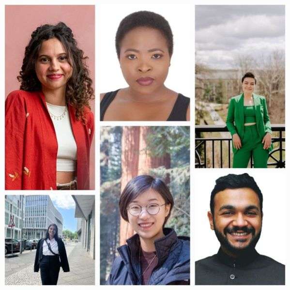 Collage mit Gast-Referentinnen und -Referenten im Uhrzeigersinn (von links): Olivia Silveira (Brasilien), Lebu Mabunda (Südafrika), Abby Jeffers (USA), Gaurav Singh Njjer (Indien), Yimei Zhang (China) und Juhi Jain (Indien)