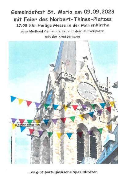Am Samstag, 9. September 2023, wird der Norbert-Thines-Platz in Kaiserslautern feierlich eingeweiht. Die Einweihung ist eingebettet in das Gemeindefest der Gemeinde St. Maria und beginnt mit einem Gottesdienst in Gedenken an Norbert und Trixi Thines um 17 Uhr in der Marienkirche. Danach gegen 18 Uhr beginnt dann auf dem Marienplatz das Fest. In drei kurzen Ansprachen werden Pfarrer Martin Olf, der Vorsitzende der Kolpingsfamilie Hans-Georg Mader sowie Bürgermeister Manfred Schulz den Platz offiziell einweihen.