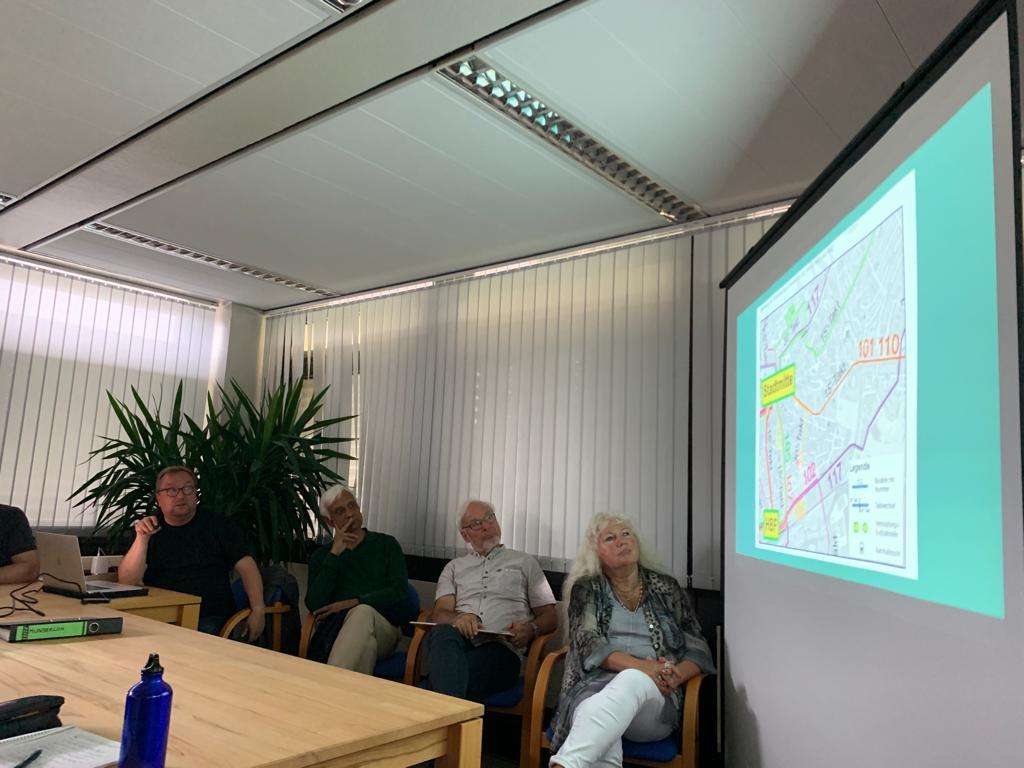 Am Freitagabend war das Büro der Grünen Stadtratsfraktion gut gefüllt: Die Fraktionäre Holger Munderloh und Michael Kunte präsentierten interessierten Bürger*innen den momentanen Stand des Nahverkehrsplans. Gemeinsam wurde im Anschluss über Ideen und Anregungen diskutiert.