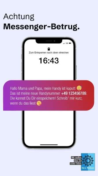 Am Freitag, 08.09.2023 wurde ein 78-jähriger Mann Opfer eines Betruges. Er erhielt eine SMS von einer unbekannten Nummer, in der sich ein unbekannter Täter als Sohn des Geschädigten ausgab. Weiterhin gab dieser an, dass er ein neues Handy besitzt und den Geschädigten bittet, über WhatsApp mit ihm in Kontakt zu treten. In dem weiteren Verlauf wurde eine vierstellige Summe eingefordert, um eine dringliche Zahlung leisten zu können. Nach Zahlung des Betrages fiel dem Geschädigten der Betrug auf und er erstattete Strafanzeige. Informationen zu dieser und andere Betrugsarten finden Sie hier: https://s.rlp.de/NBled |wey