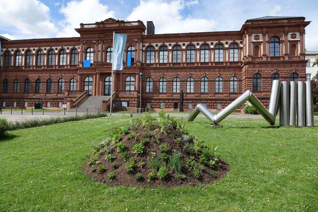 Ebenfalls links stehend sticht die leuchtend rot gestrichene „Große Wenga“ von Christoph Freimann (Jahrgang 1940) ins Auge, eine 13 Tonnen schwere Stahlplastik aus 12 vorgefertigten Stahlelementen, die von den Kanten eines Würfels abgeleitet sind. Dahinter, direkt vor dem Museumsgebäude, wartet Lon Pennocks (1945-2020) schwarz-braun lackierte Stahlplastik von 2018 auf ihre Entdeckung. Den rechten Teil des Vorplatzes beherrscht Erich Hausers (1930-2004) ausladende „Raumsäule 7-68“ (1968) aus Edelstahl, während sich rechts hinten vor dem Gebäude die schwarze „Große Figur“ (1991) von Hans Steinbrenner (1928-2008) erhebt. Mit diesen acht Skulpturen lädt das Museum Pfalzgalerie ein, seiner reichhaltigen Sammlung einen Besuch – am besten gleich mehrmals – abzustatten. Das mpk ist donnerstags von 11 bis 20 Uhr und dienstags, mittwochs, freitags sowie an Wochenenden und feiertags von 10 bis 17 Uhr geöffnet. Die Sonderausstellung „Artists for Nature“ wird noch bis 24. September gezeigt.